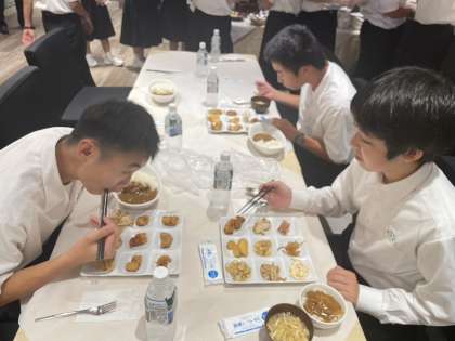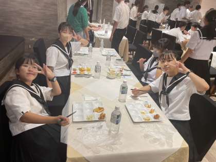 写真は、ビュッフェ形式で昼食を楽しむ4組です。