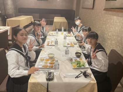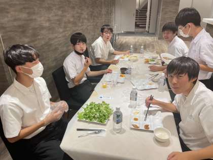 写真は、ビュッフェ形式で昼食を楽しむ4組です。