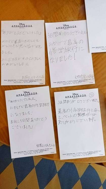 生徒たちの部屋には、スタッフの方たちへ感謝のメモが残されていました。