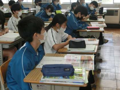 小学校で学習した内容も確認する中で、「あれ、なんだっけ」の声があちこちからもれます。あと10日ほどで定期テストが始まります。確実に記憶に残せるよう、今後の学習に励んでほしいと思います。