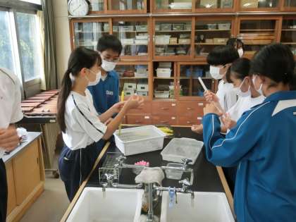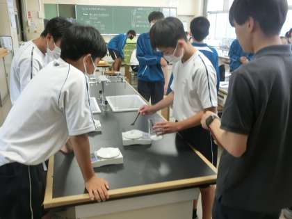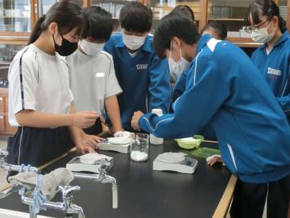 化学変化と熱の出入りという単元で、「熱を吸収する化学反応もあるのかな」をテーマに実験が行われていました。