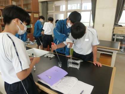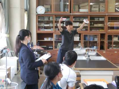 化学変化と熱の出入りという単元で、「熱を吸収する化学反応もあるのかな」をテーマに実験が行われていました。
