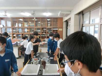 化学変化と熱の出入りという単元で、「熱を吸収する化学反応もあるのかな」をテーマに実験が行われていました。