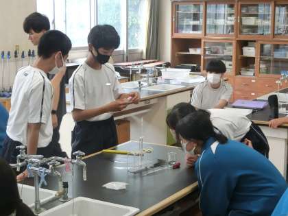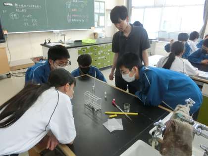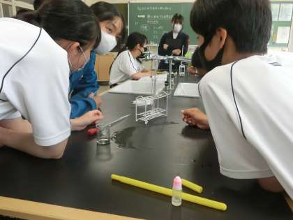 化学変化と熱の出入りという単元で、「熱を吸収する化学反応もあるのかな」をテーマに実験が行われていました。