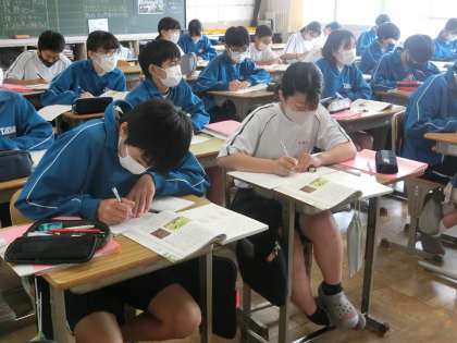「クマゼミ増加の原因を探る」というタイトルの説明文を段落ごとに読み込んでいく学習でした。