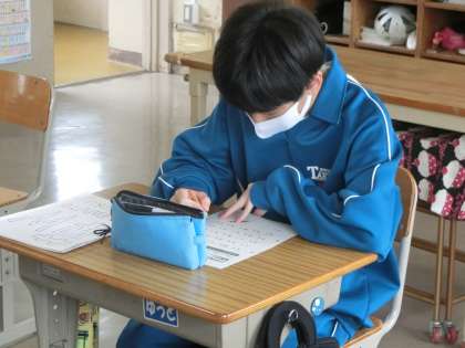 自分の持ち物や教室内の様々なものから必死にアルファベットを探していました。