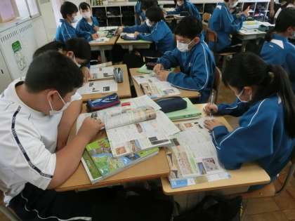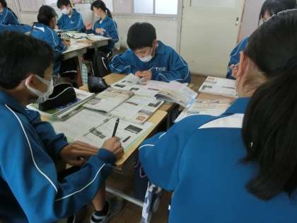 1年4組の社会・歴史分野の授業の様子です。