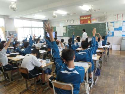 とにかくよく手が挙がる授業。その挙げ方も見事です。