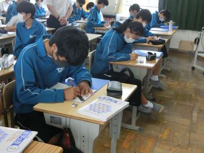 定期テスト直前での休校を含めた3連休の学習を取り返そうと、仲間と協力して学習に取り組んでいました。