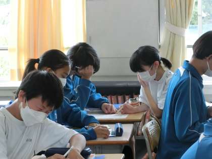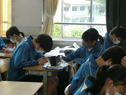 定期テスト直前での休校を含めた3連休の学習を取り返そうと、仲間と協力して学習に取り組んでいました。