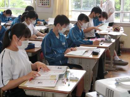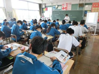 各自が調べた内容を発表したあと、学習のまとめに取り組んでいました。定期テストがちかいということもあり、いつも以上に一生懸命取り組んでいるように感じました。