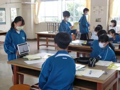 「繊維について分かりやすく発表しよう!」をテーマに、これまで個人で調べ上げてきた内容を発表し合っていました。