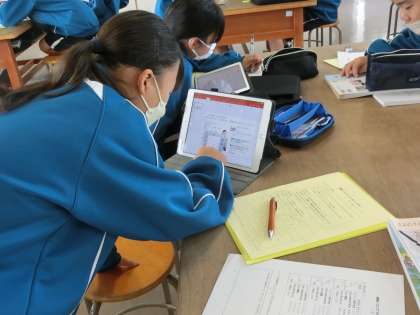 「繊維について分かりやすく発表しよう!」をテーマに、これまで個人で調べ上げてきた内容を発表し合っていました。