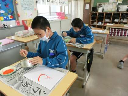 1,2学級の美術の授業の様子です。