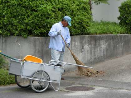 校内整備員さんが大雨明けの校内を懸命にきれいにしてくださっていました。