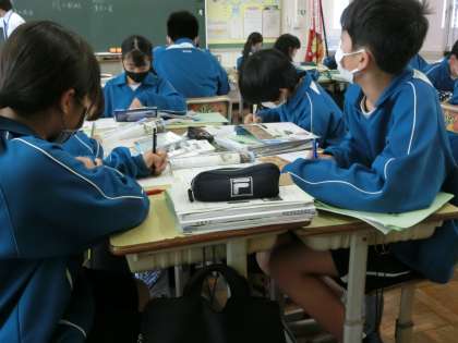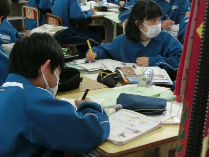 1年3組の社会・歴史分野の授業の様子です。