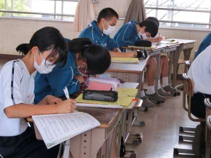 今日は、担任も一緒に勉強しています。秋に行われる合唱コンクールに向けて、すでに各クラスの戦いは始まっているようです。
