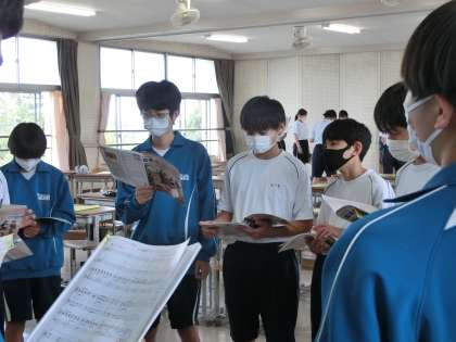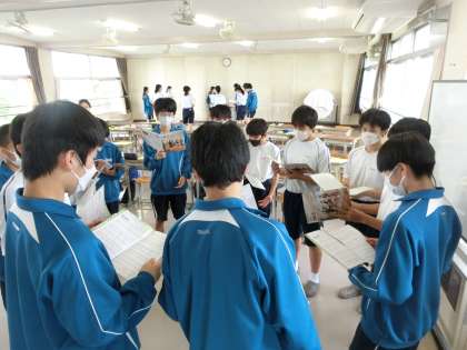 今日は、担任も一緒に勉強しています。秋に行われる合唱コンクールに向けて、すでに各クラスの戦いは始まっているようです。