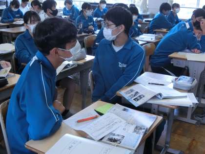 新たなテーマが提示されるたびに真剣に学びに向かう生徒たち。「やっぱり3年生はスゴイ!」といつも感心させられます。