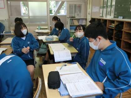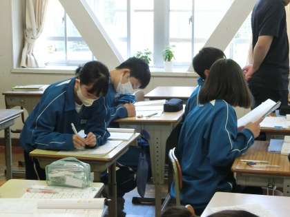 いよいよ本格的な数学の内容に入ったといった感じです。今日は教育実習生による授業でした。いつもと変わらず、積極艇に授業に臨んでいました。