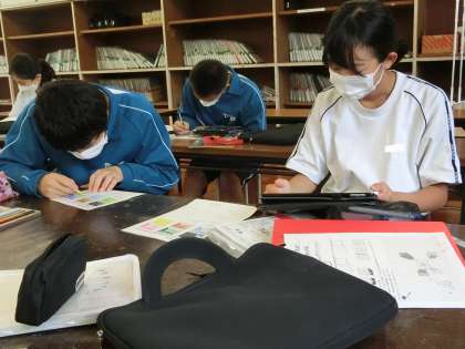 理想の空間のスケッチで、「光と陰影で雰囲気を作ろう」をテーマに、作品づくりのベースとなる作業の練習が行われていました。