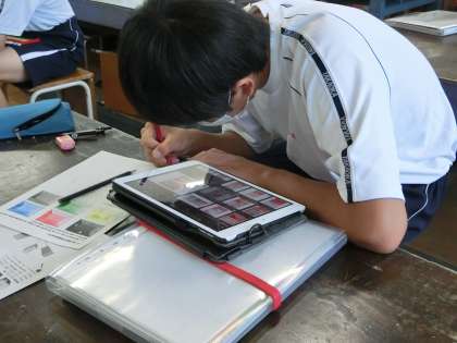 理想の空間のスケッチで、「光と陰影で雰囲気を作ろう」をテーマに、作品づくりのベースとなる作業の練習が行われていました。