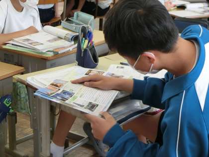個人で調べ上げたことをグループで共有したあと、全体に発表していきます。