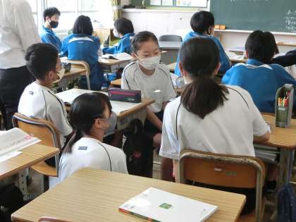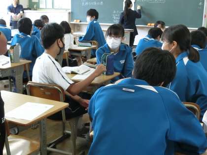 「ネット将棋」という資料を使って、「誠実に生きるためにはどうすればいいのか」をテーマに意見交流が行われていました。