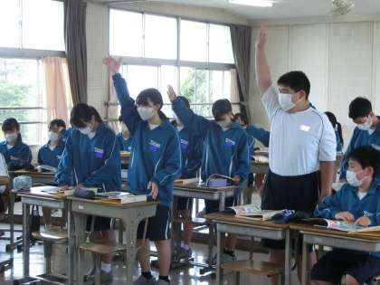記憶だけで答えられないものは、教科書などから必死に探し出しています。1年生は手の挙げ方が本当にきれいで、いつも感心しています。