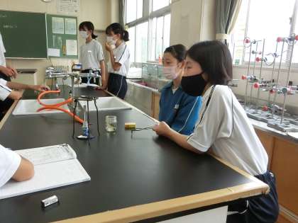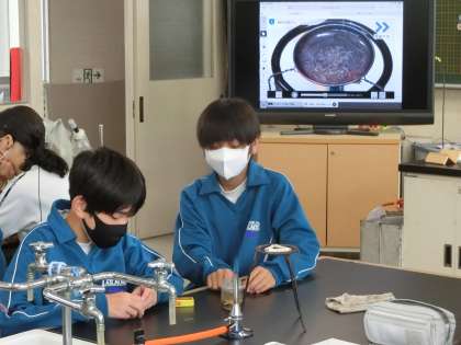 器具を安全に扱ったり、銅の分量をていねいに量ったりしていきます。正確な実験結果を得るために、グループでの協力も欠かせません。予想と違っていて残念がるグループ、何度もチャレンジした結果、予想どおりの結果が出たグループなど様々でしたが、最後の考察の時間に結果からわかる事柄をきちんとまとめていました。