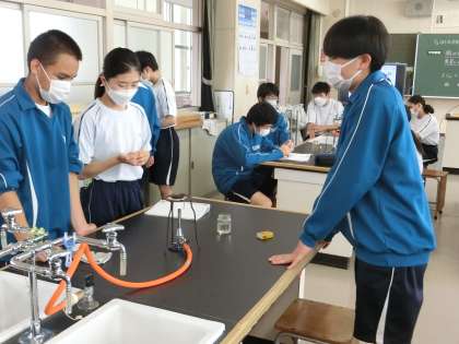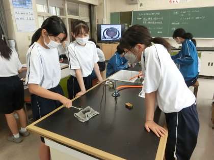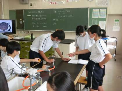器具を安全に扱ったり、銅の分量をていねいに量ったりしていきます。正確な実験結果を得るために、グループでの協力も欠かせません。予想と違っていて残念がるグループ、何度もチャレンジした結果、予想どおりの結果が出たグループなど様々でしたが、最後の考察の時間に結果からわかる事柄をきちんとまとめていました。