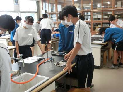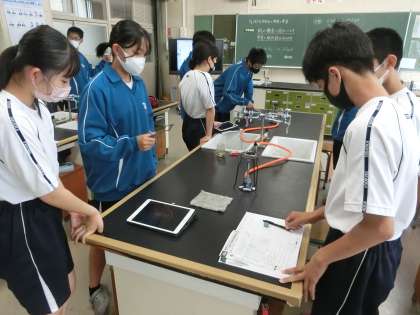 器具を安全に扱ったり、銅の分量をていねいに量ったりしていきます。正確な実験結果を得るために、グループでの協力も欠かせません。予想と違っていて残念がるグループ、何度もチャレンジした結果、予想どおりの結果が出たグループなど様々でしたが、最後の考察の時間に結果からわかる事柄をきちんとまとめていました。