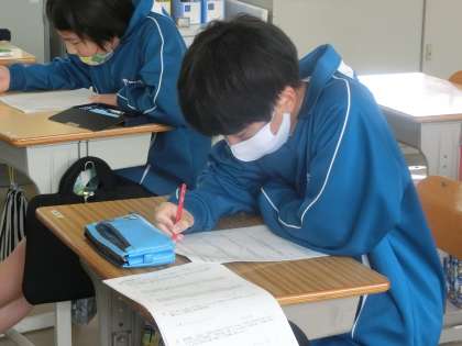 6/9 真剣かつ笑顔で… 3 公開日 2023/06/09 更新日 2023/06/09 各学年から 1,2学級の数学の授業の様子です。 各自の課題に取り組んでいました。 しっかりと先生にアドバイスをもらう生徒、自力で問題を解いていく生徒など様々です。解けた時の喜び、正解した時の喜びを味わいながら、真剣に取り組みながらも笑顔の多い授業でした。