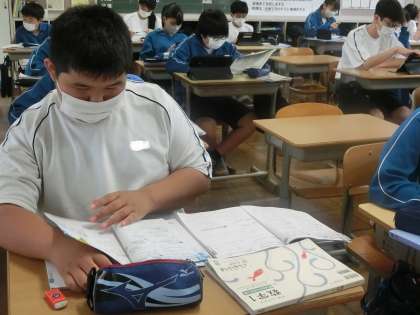 単に勉強の時間というものではなく、明日からの休日、一人で家庭で学習できるようにその準備の意味で取り組まれています。仲間や先生にどんどん質問したり、アドバイスをもらったりできる最後のチャンスでもあります。テストに向けての学習の計画は、こういったことも含まれることを学んでいってほしいと思います。