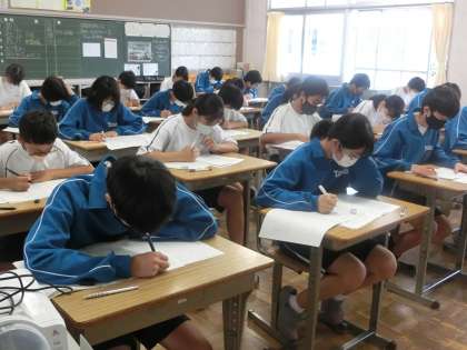 第1回定期テスト初日の2年3組の様子です。