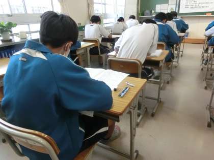 第1回定期テスト初日の2年5組の様子です。