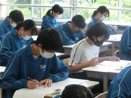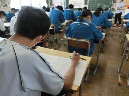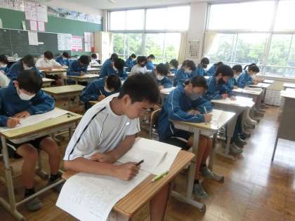 第1回定期テスト初日の3年2組の様子です。