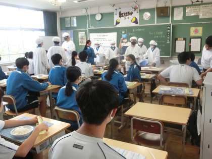 6/12 疲れ切った頭に栄養補給 5 公開日 2023/06/12 更新日 2023/06/12 各学年から 3教科のテストを終え、ようやく給食の時間。酷使した頭への栄養補給です。 写真は、3年生の給食の準備の様子です。 当番も手際よく配膳を行っています。
