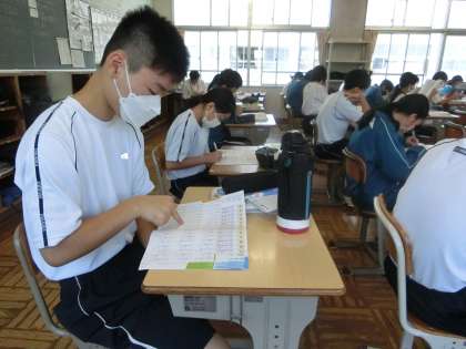 6/13 テスト2日目の朝 6 公開日 2023/06/13 更新日 2023/06/13 各学年から テスト2日目、朝の活動でテスト勉強に励む2年生の様子です。 この様子なら、残り2教科もしっかり乗り切れそうな予感がしました。