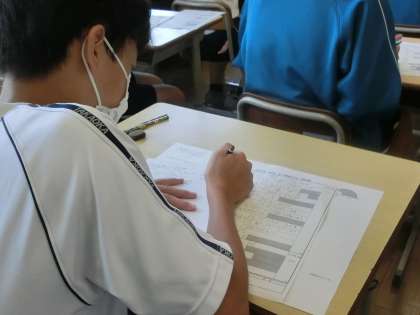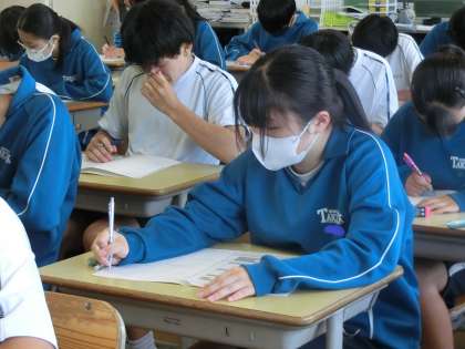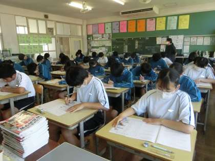 第1回定期テスト2日目の3年5組の様子です。