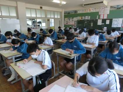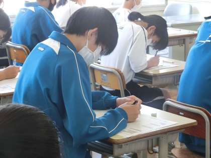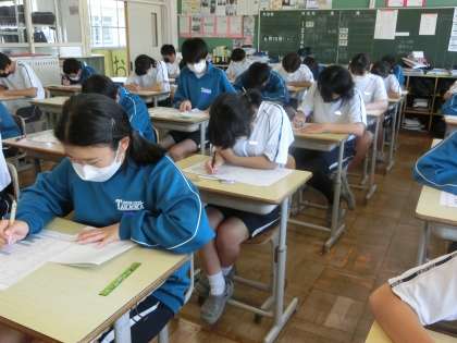 第1回定期テスト2日目の3年2組の様子です。