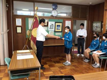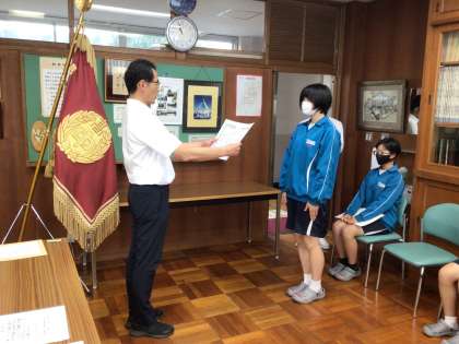 今年度に入り初めての表彰伝達となります。読書感想画や読書感想文の入賞、柔道(クラブ)大会での上位入賞について、全校生徒への紹介も兼ねて行いました。