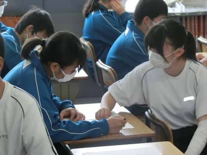 定期テストの返却とその解説が行われていました。