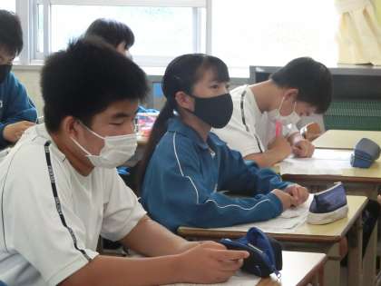 6/14 間違えの理由をつきとめる 3 公開日 2023/06/14 更新日 2023/06/14 各学年から 1年3組の英語の授業の様子です。 定期テストの返却と解説が行われていました。 単に間違いを直すだけでなく、間違えてしまった理由も確認し、同じ間違いをしないよう指導していきたいと思います。