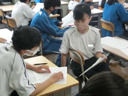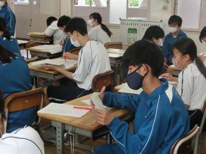 定期テストの返却と解説が行われていました。