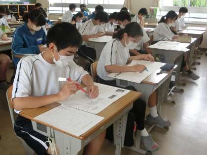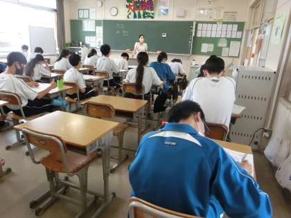 定期テストの返却と解説が行われていました。