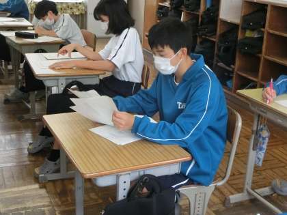 定期テストの返却と解説が行われていました。
