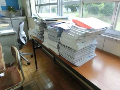 6/15 先生たちの苦労 公開日 2023/06/15 更新日 2023/06/15 校長室から 定期テスト中の先生たちは、テストの作成、採点、確認など、目に見えない多くの業務をこなしています。そしてテストの返却が終われば、ひと段落… ではありません。 生徒たちが提出する「テスト課題」の点検が残っています。 教室の片隅に受けもつクラスの生徒のテキストが積まれ、点検の時を待っています。