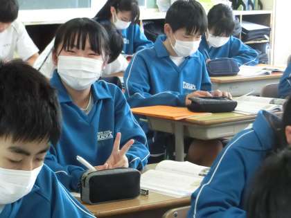 「本とペンで世界を変えよう」という資料を使って、世界に目を向けるきっかけにする授業が進められていました。
