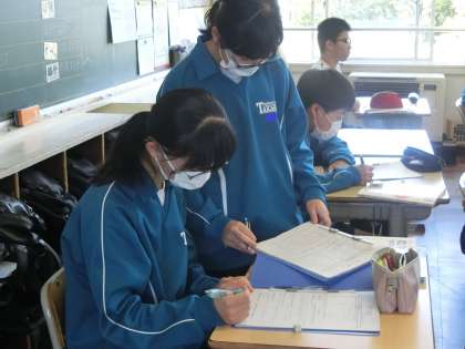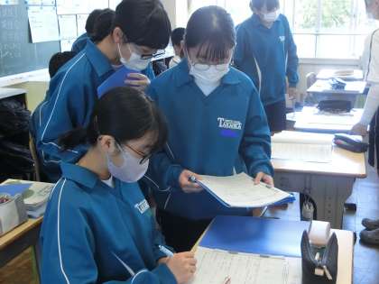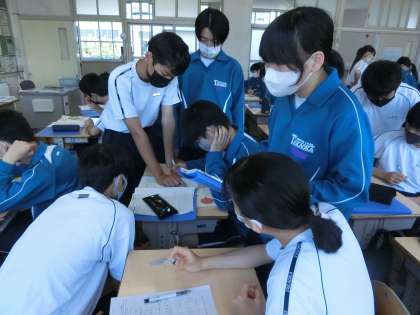 問題を解き始めてしばらくすると、仲間のところに行き、解答の確認や教え合う活動が自然と始まります。学習のスタイルが定着しているようです。